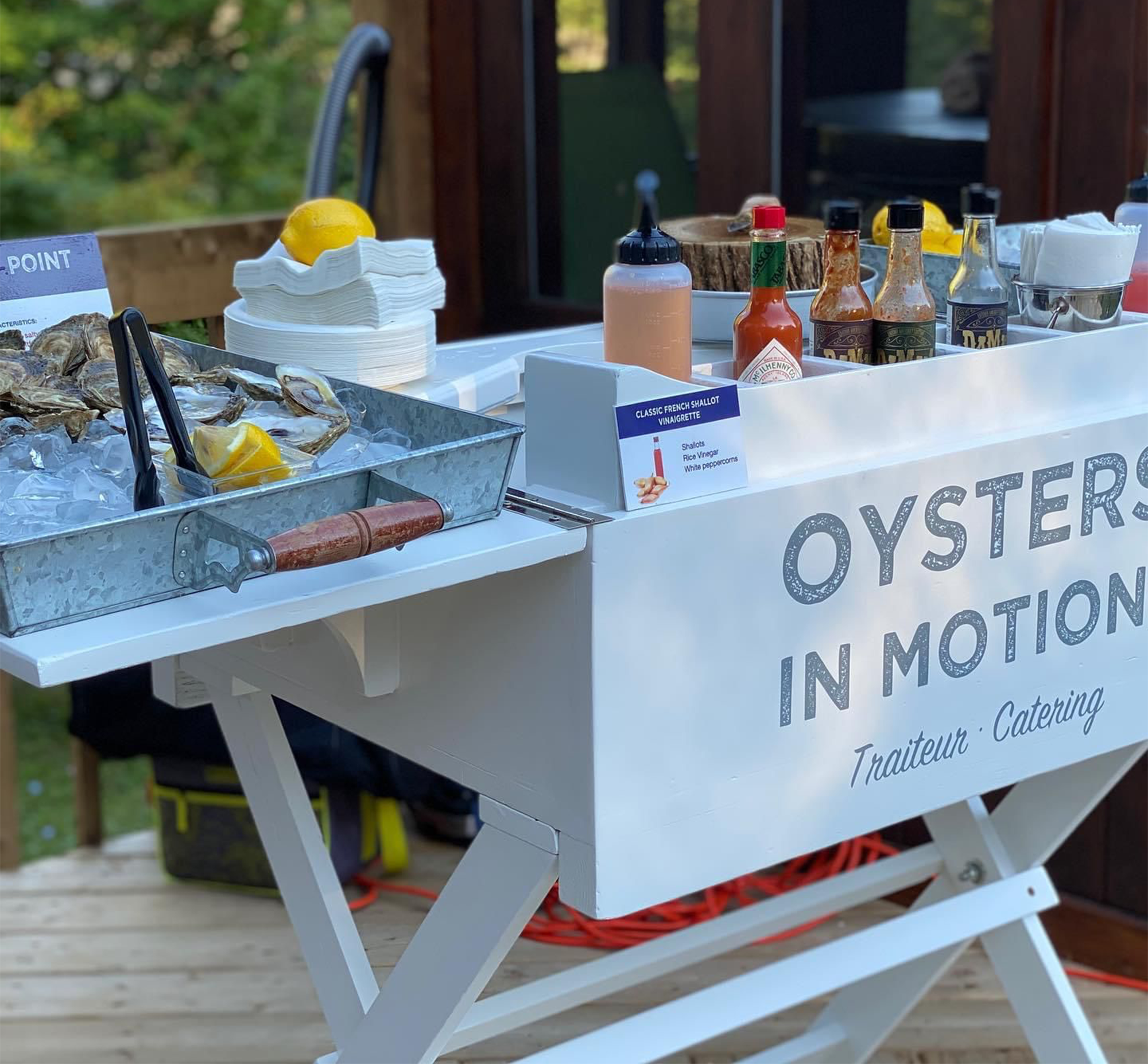 Featuring our smaller more intimate oyster stands. These stands are entertaining and "one on one" with the oyster shuckers. Oyster lovers enjoy spending time watching Shuckers expertly handling and serving these delicious bivalve molluscs alongside these interactive
