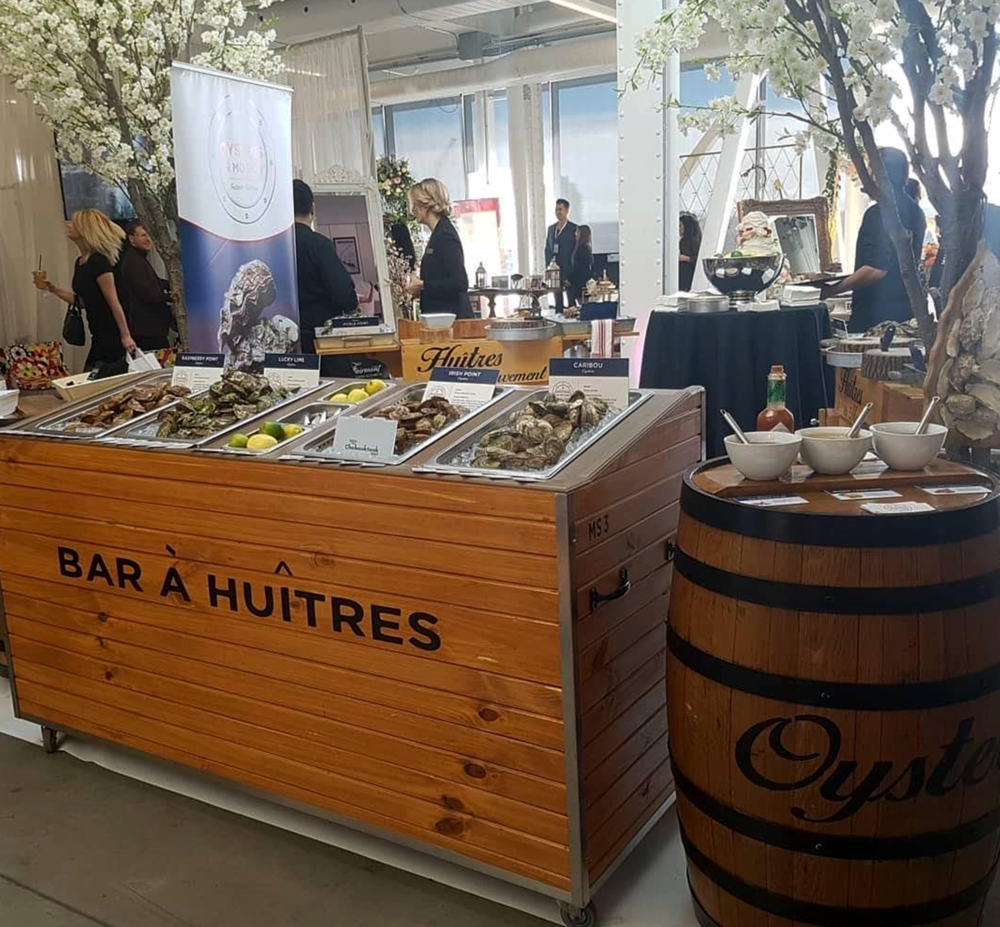 With the choice of our diverse oyster counters, stands and barrels, we adapt to any theme for all types of events.